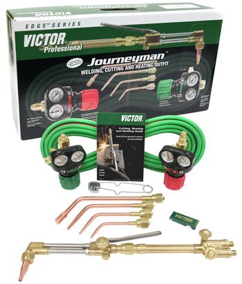 Victor(r) Journeyman Welding & Cutting Outfit 0384-2035 The Journeyman(r) is a premium welding & cutting outfit for industrial and commercial use. Journeyman(r) components are designed for a full range of demanding needs. Welds 3/64" - 1/2" with included nozzles (or up to 3" with optional nozzles). Cuts up to 3/4" with included tip (or up to 8" with optional tips). Kit Includes: ESS4 Edge Series Regulators with Gauge Guards H315FC Torch Handle CA 2460 Cutting Attachment “W"Welding Nozzles, Sizes:1, 3, 5 8 MFA Heating Nozzle 1-1-101 Cutting Tip goggles, 25' Grade "T" twin hose & spark lighter multi wrench tip cleaners Built-in flashback arrestors and reverse flow check valves You must choose your "acetylene inlet" based on the type of acetylene tank you have. If your tank valve has male threads, you should choose a CGA 300 (female) regulator. Note: will not fit "B" or "MC" acetyleneyou looking for low-priced Victor 0384-2035 Journeyman 540/300 W/Edge Reg?